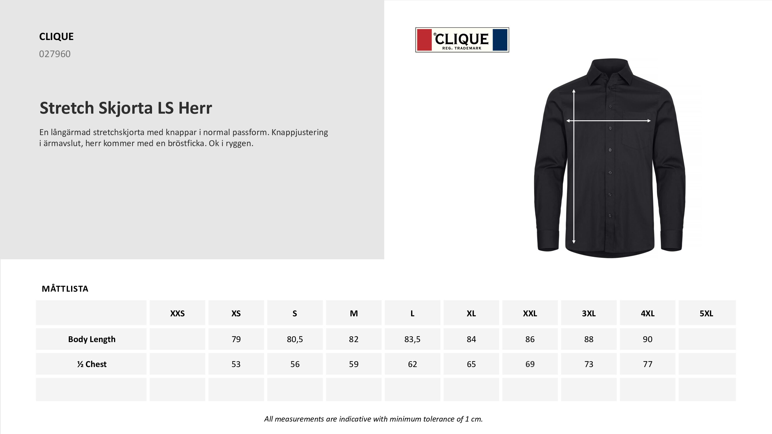 | Storlek | XS, S, M, L, XL, 2XL, 3XL, 4XL |