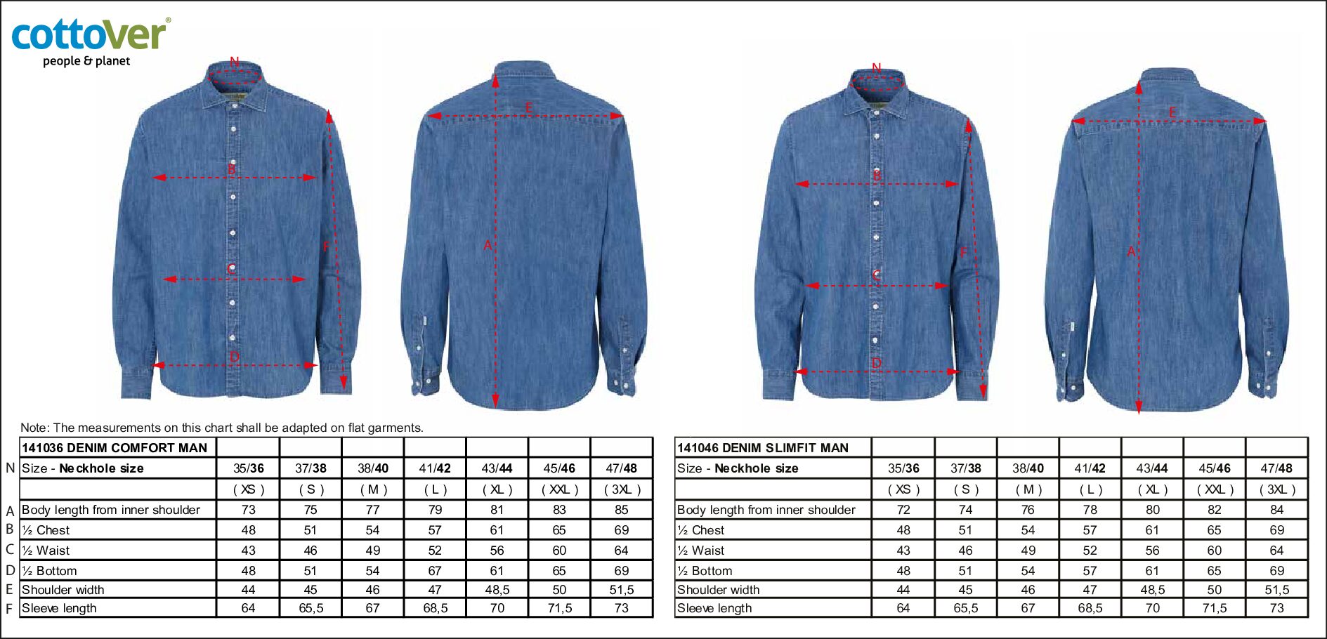 Skjorta i denimmaterial med mjuk känsla. Skjortan är enzymbehandlad vilket ger varje skjorta ett naturligt och unikt utseende. Cut away krage på herr och turn down på dam. Herr i Slim Fit och Comfort, dam i insvängd modell med två insnitt i ryggen, för att ge en skräddarsydd siluett. Vikt 6,5 oz.